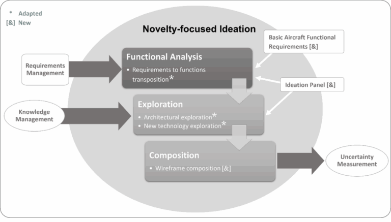 Based on a paradigm that technology development involves three stages of invention, innovation, and diffusion (Jaffe, Newell, and Stavins 2002) and the state of existing aircraft design methodology, the aviation industry could be said to be weak at invention (generating novel concepts). Specifically, there are potential gaps within the concept design stage in methods to assess and manage uncertainties associated with radically new concepts and methods to systematically generate novelty in concepts (Jeoh, 2024). Uncertainty precludes engineers from being able to form and consider novel concepts within the concept design stage, and a systematic methodology for ideation would enhance the formation of novel concepts.