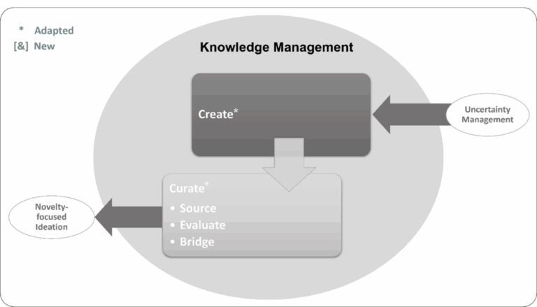 Finally, the novel concept generation cycle is supported with knowledge management, which is a means to capture and present the learnings from uncertainty management and prepare materials that could serve as inspiration for novel ideas during the novelty-focused ideation step, as shown in Figure 6. Knowledge management can involve both the creation and curation of explicit design knowledge in such a way as to facilitate search and use during ideation.